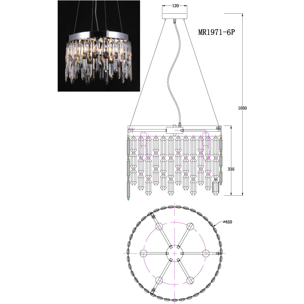 Подвесная люстра David MR1971-6P от российской компании MyFar отлично справится с освещением гостиной или спальной комнаты с дизайном в стиле классический. Данная модель способна осветить помещение площадью 12 кв.м. Светильник изготовлен из материала: хрусталь, и крепится на пластину. Основной цвет изделия: прозрачный; цвет арматуры: хром. Чтобы выбрать и купить идеальную люстру с доставкой в Москве, Люмина-Лайт предлагает Вам сравнить несколько понравившихся светильников или воспользоваться помощью наших опытных менеджеров.